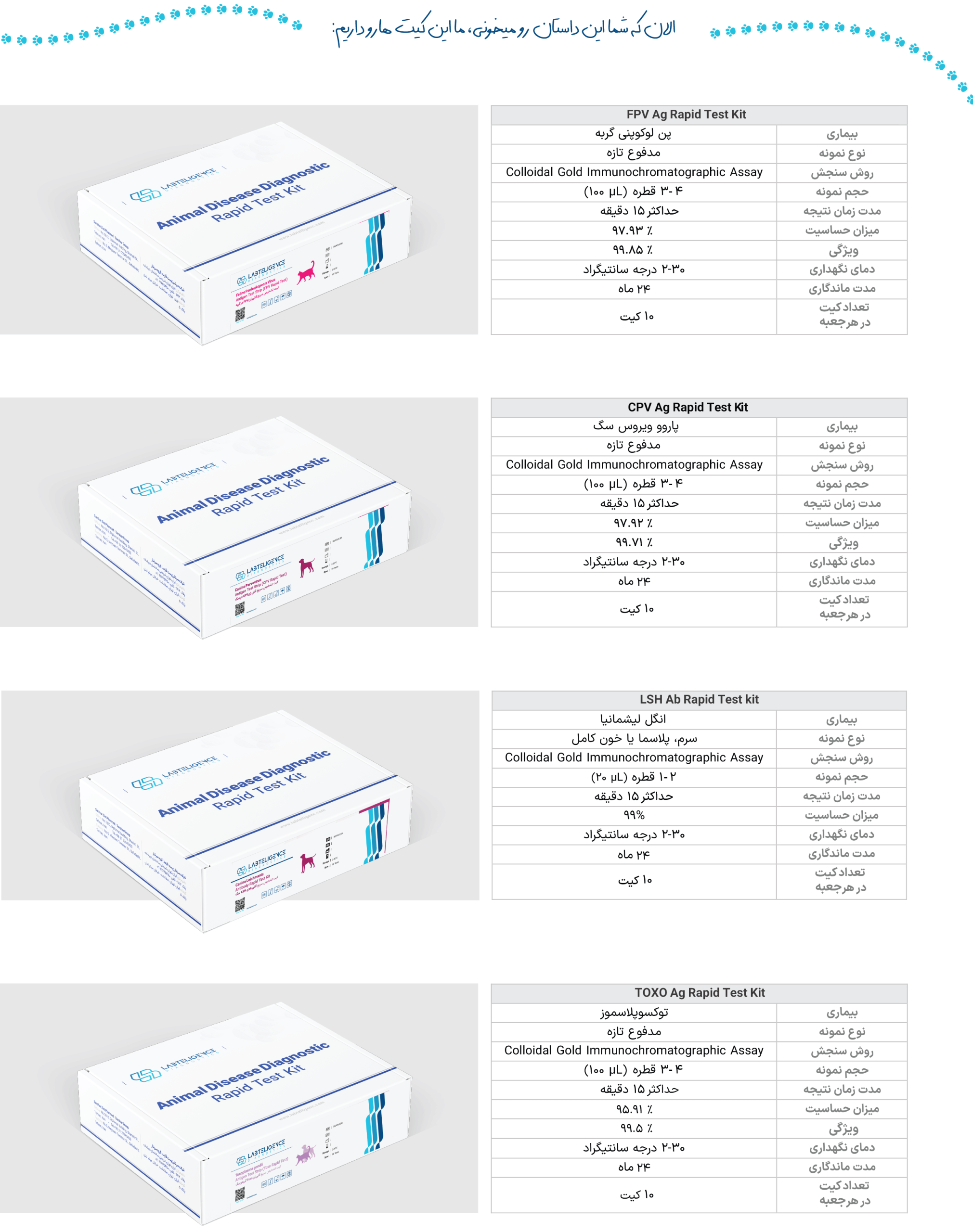 در کنار آن، بخش دامپزشکی LABTELIGENCE نیز با ارائه کیتهای تشخیصی دقیق در حوزه دام بزرگ، حیوانات خانگی طیور و صنایع غذایی، نقش مهمی در پیشگیری از بیماری ، مدیریت بیماری، و افزایش بهرهوری صنعت دام ایفا میکند.